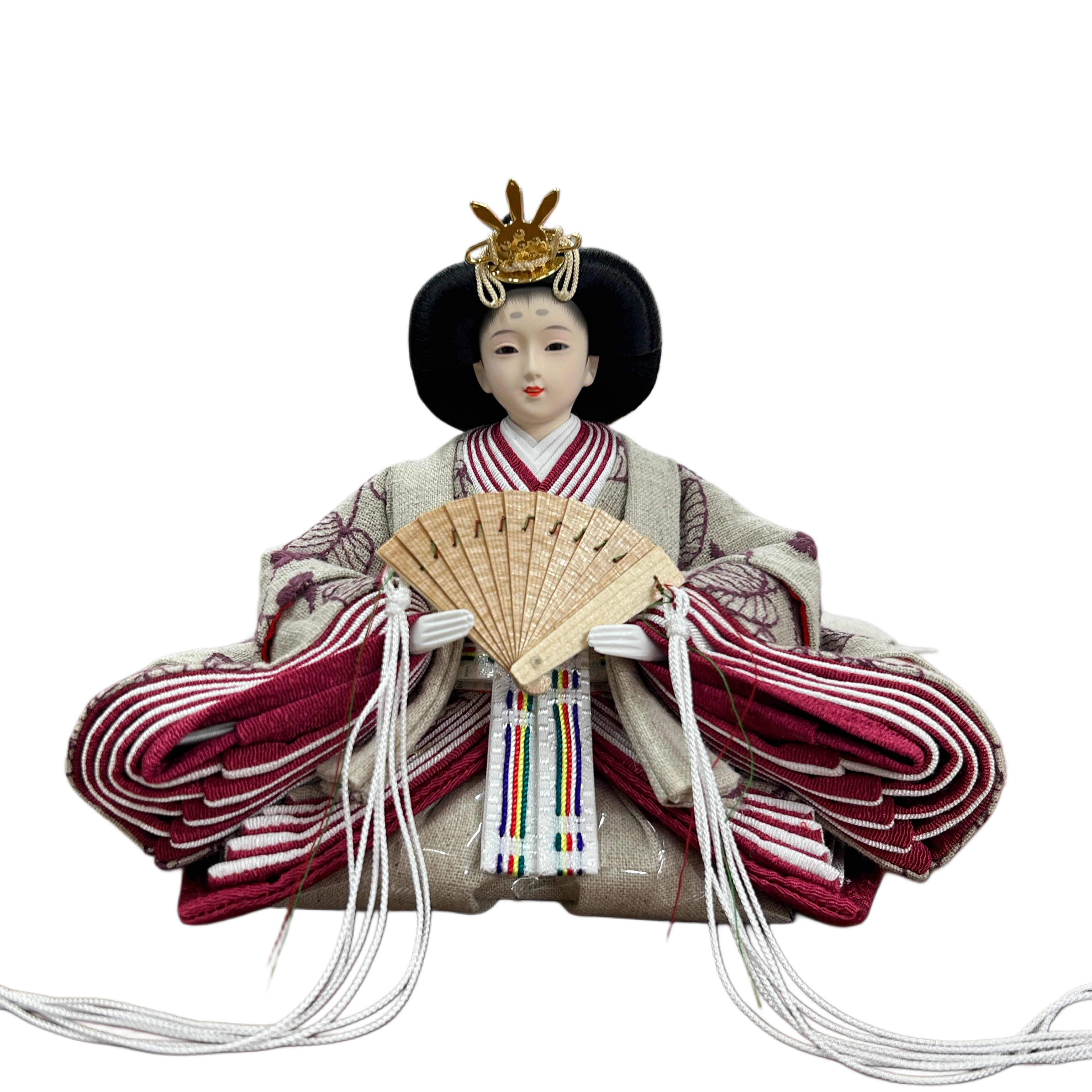 飾り台と親王台には栓(せん)材を使用し、シックなブラウンで塗装。木目の美しさが活きる自然な風合いで、インテリアとしても馴染みやすい仕上がりです。