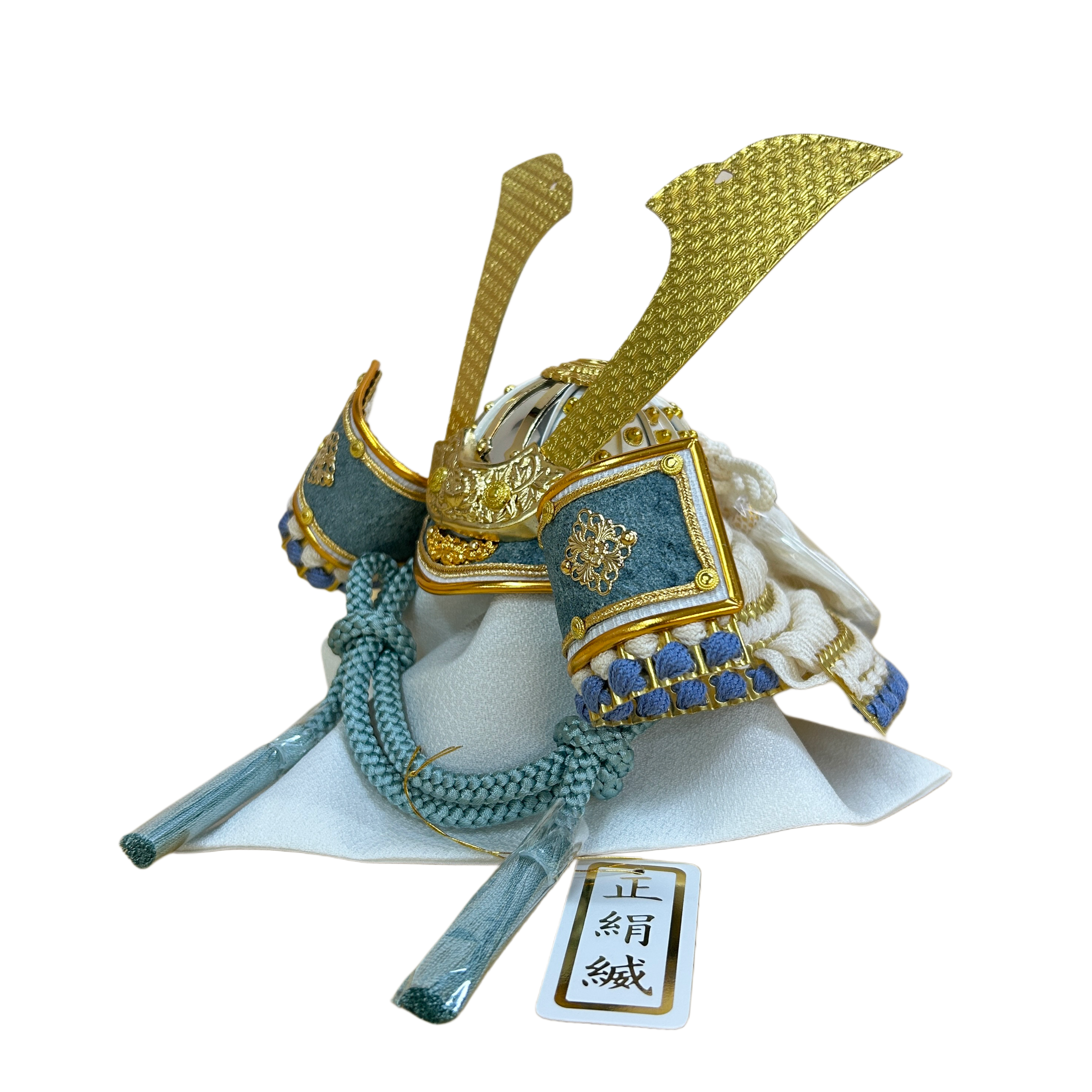 金の装飾と淡い色合いの組み合わせが、凛とした存在感の中にも優しさを感じさせ、初節句のお祝いにふさわしい気品のある佇まいです。