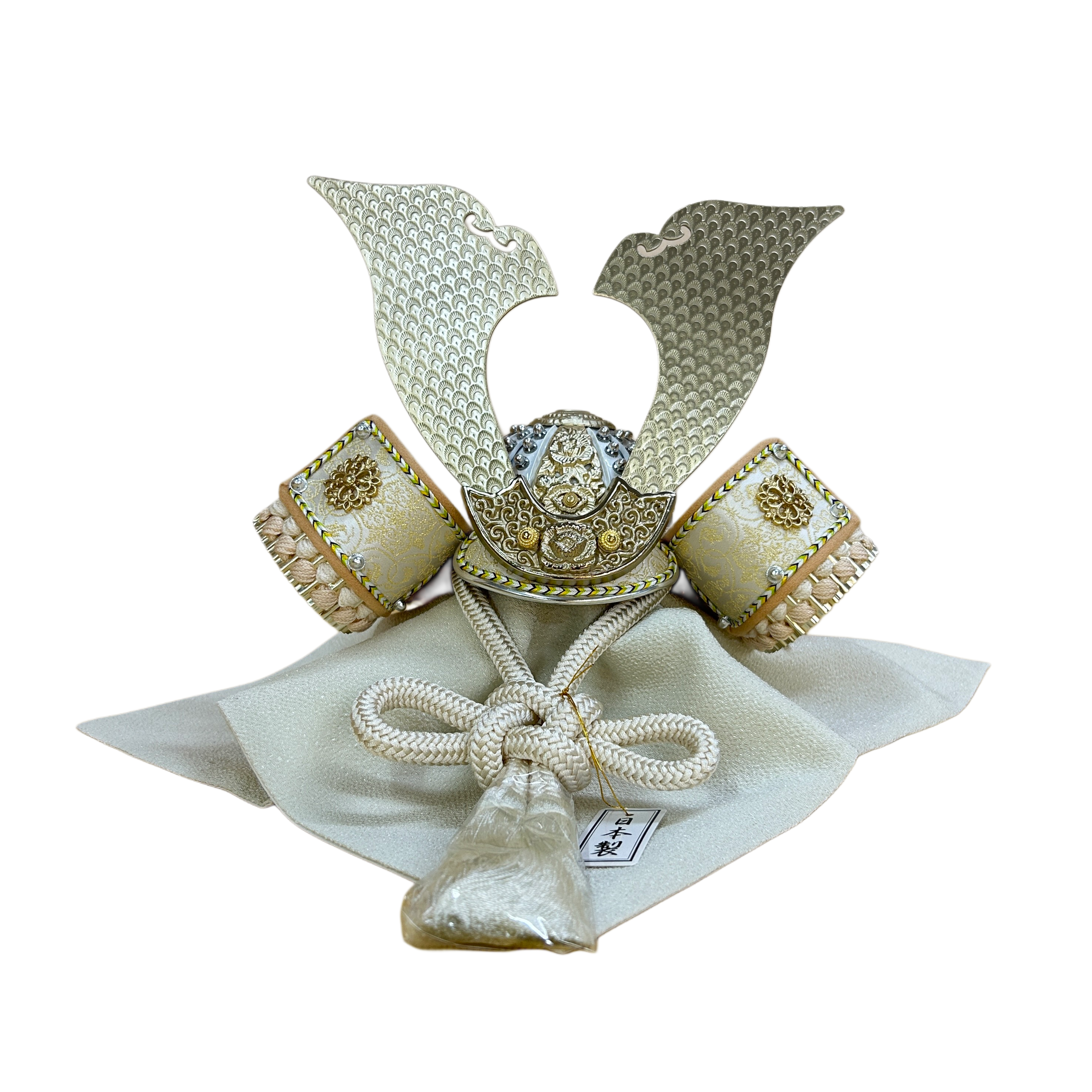 やわらかな木目と淡い色合いでまとめられており、現代の住まいにも自然に馴染む洗練された兜飾りです。