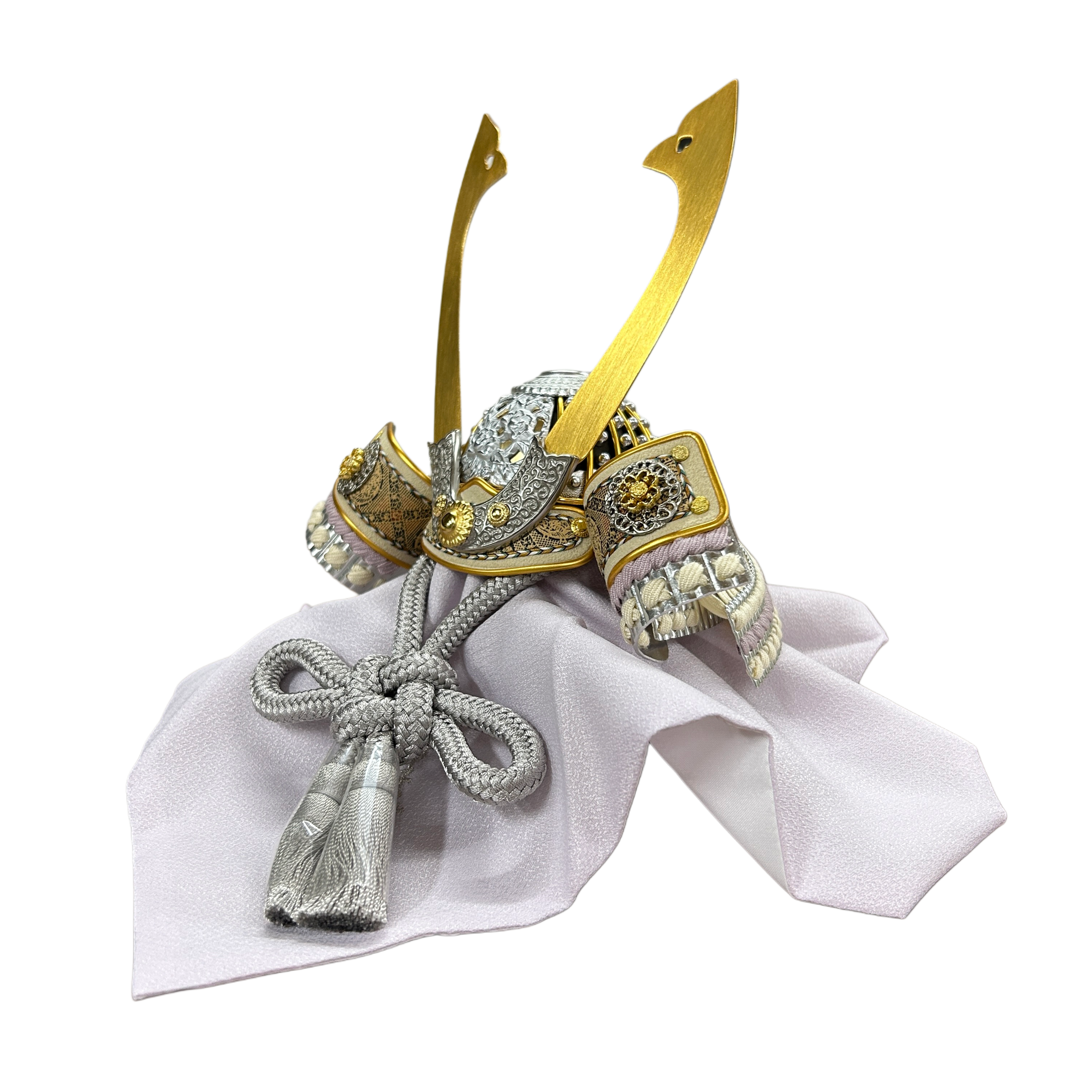 落ち着きのある背景が、兜の美しさを引き立てつつ、上品な空間を演出します。