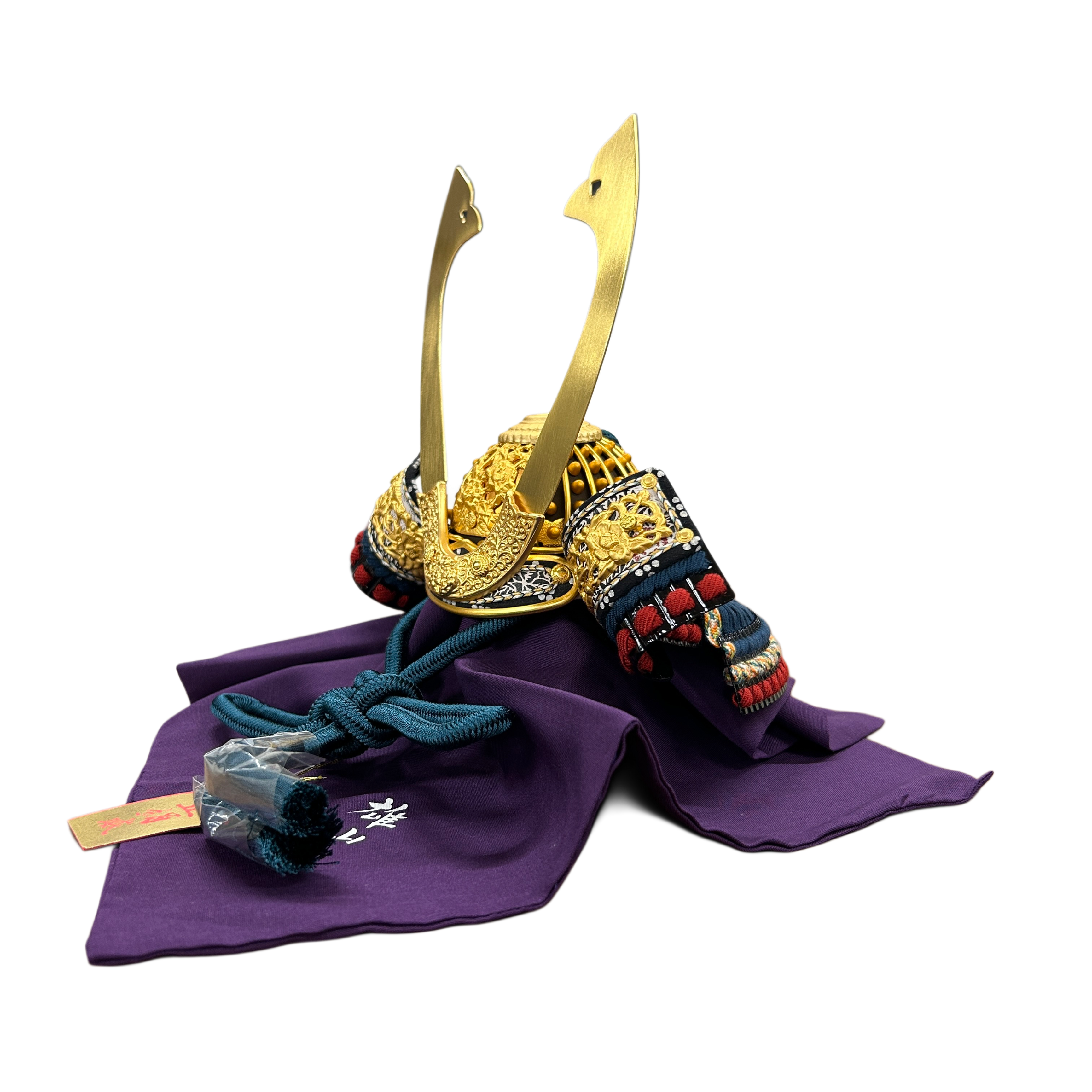 美しい金の鍬形と、紫のふくさが印象的で、格式の中にも洗練された雰囲気を感じさせます。