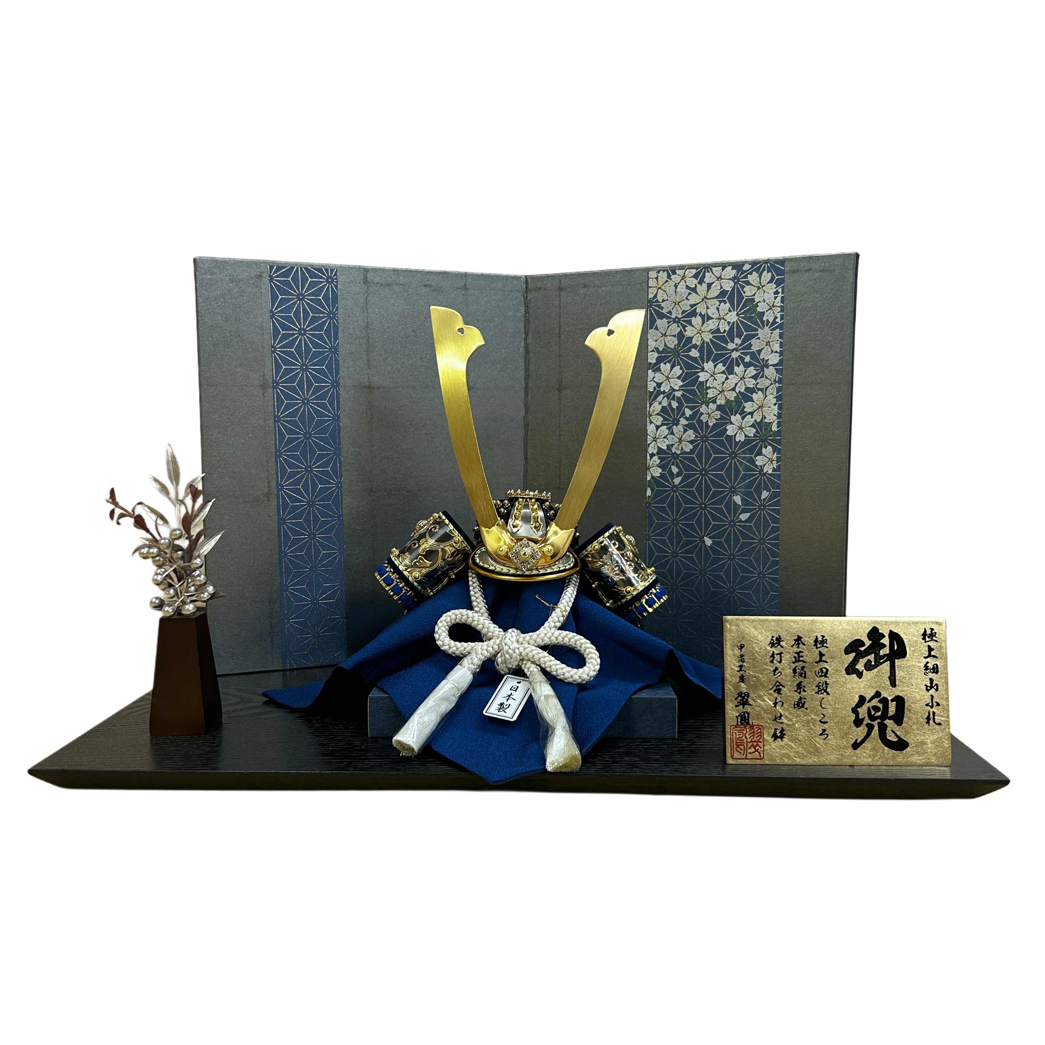 伝統的な美しさと現代の空間にも馴染むデザインを兼ね備えた、翠鳳作の兜飾り。