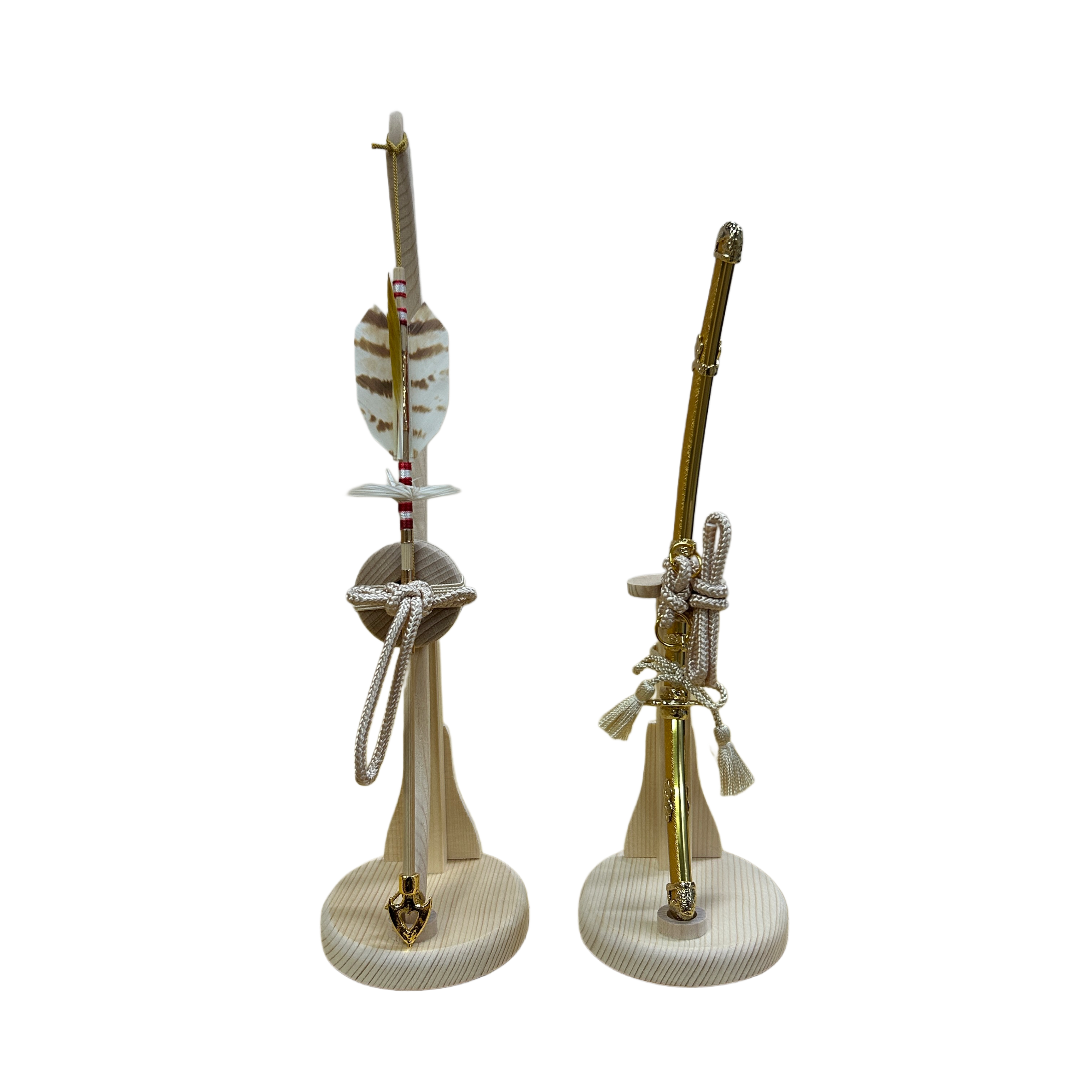 明るい木目と黒のコントラストが、兜の白と金をより美しく引き立てます。