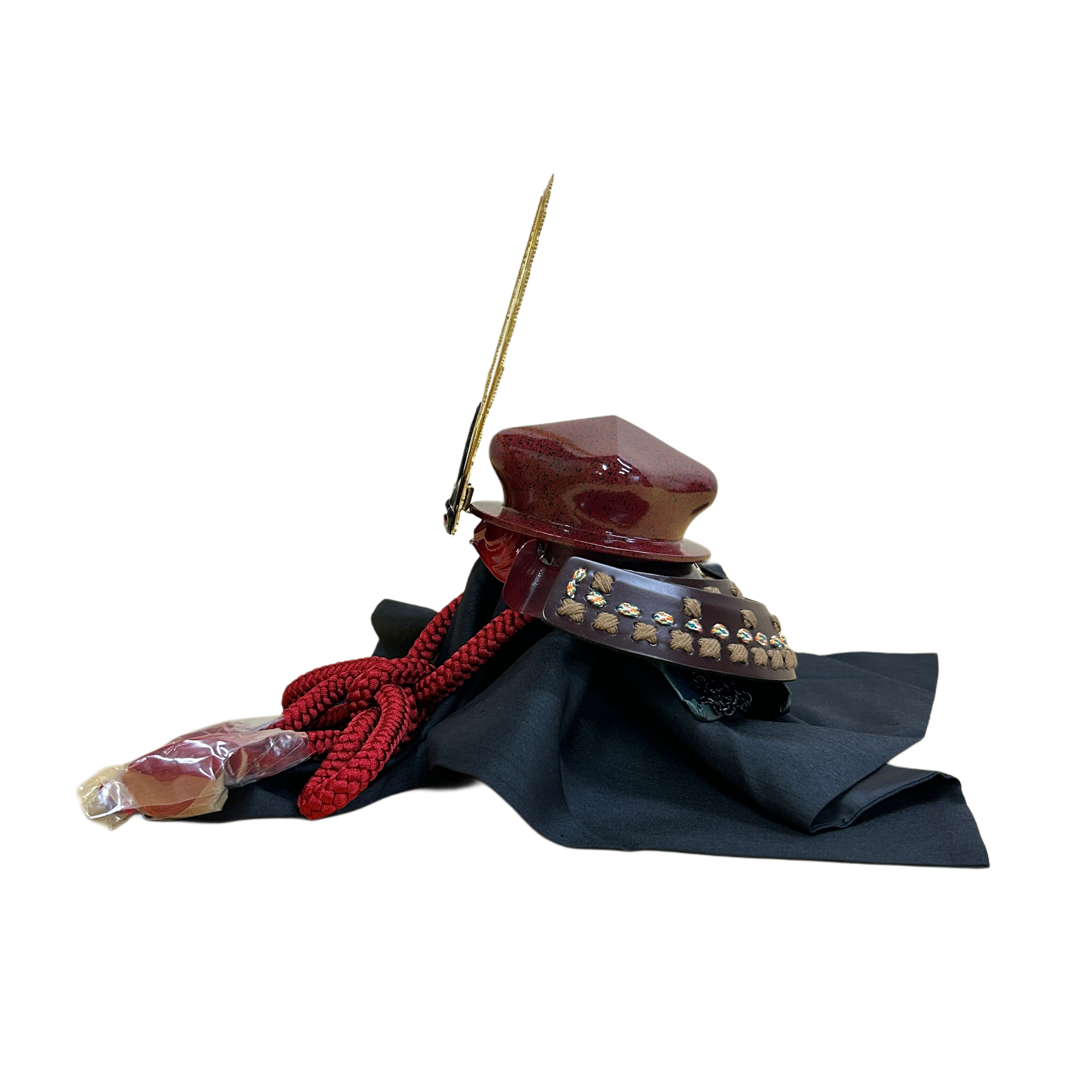 徳川家康公ゆかりの兜として知られる「大黒頭巾兜」を再現した、格式ある兜飾りです。