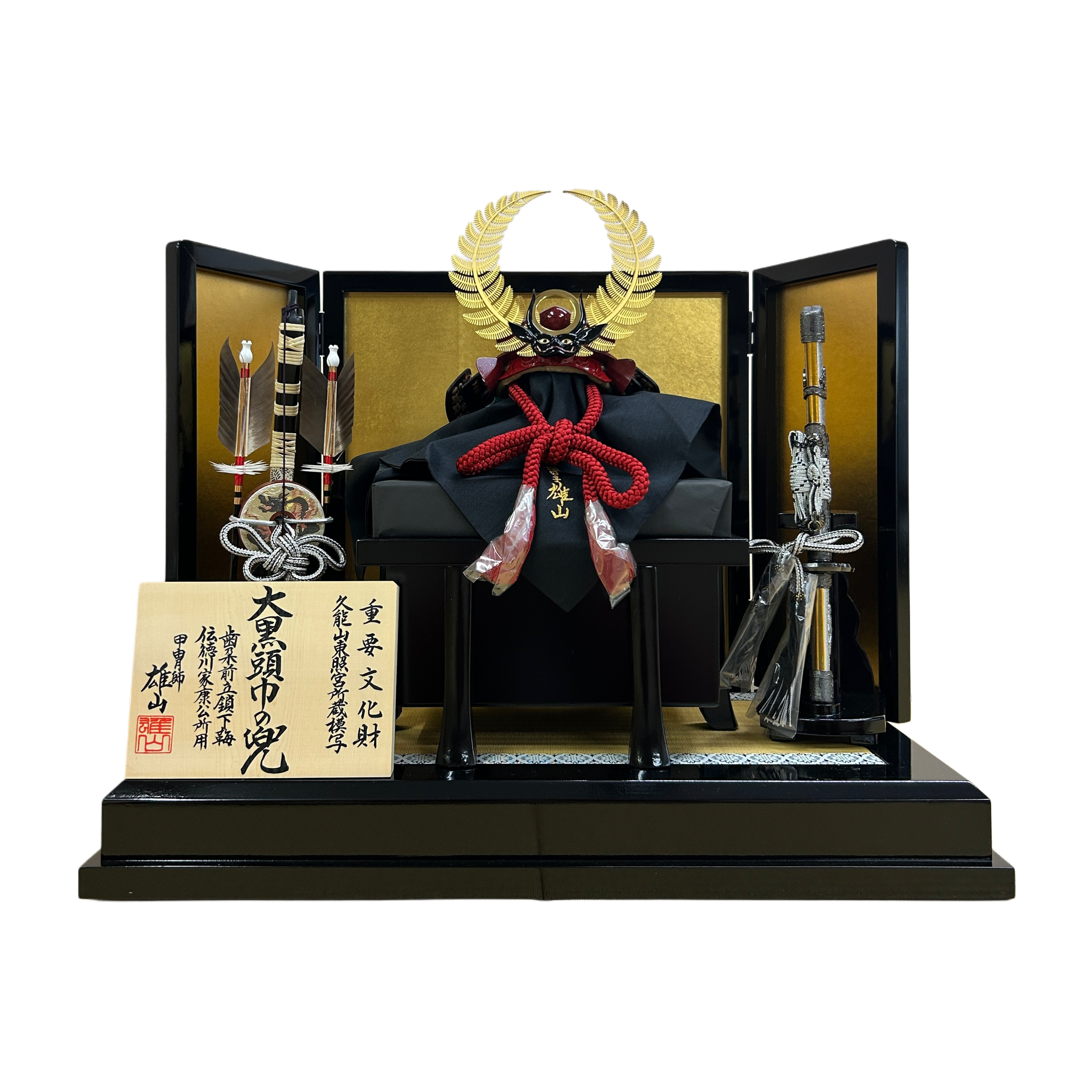 黒と金の対比が美しく、格式ある節句飾りとしての存在感を高めています。