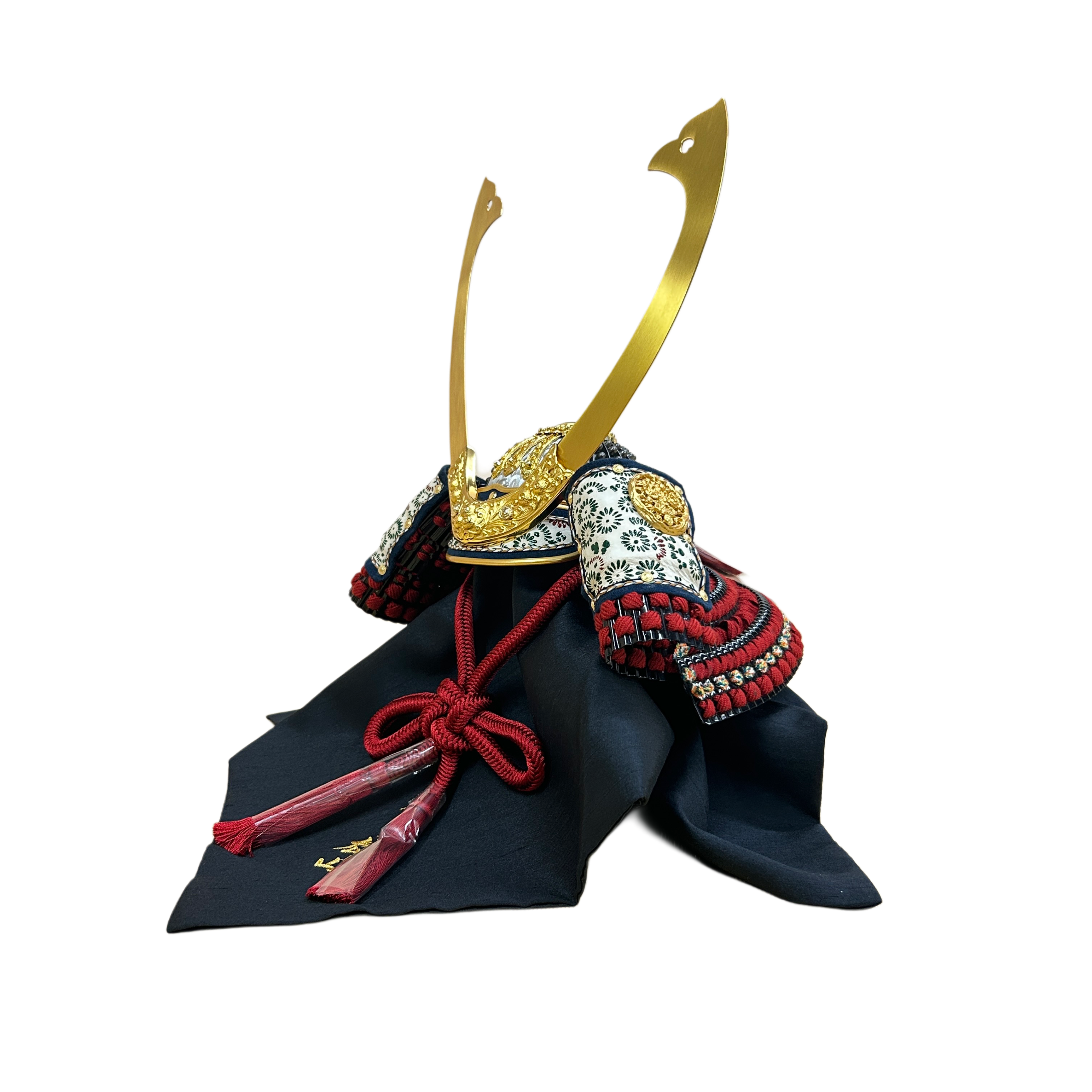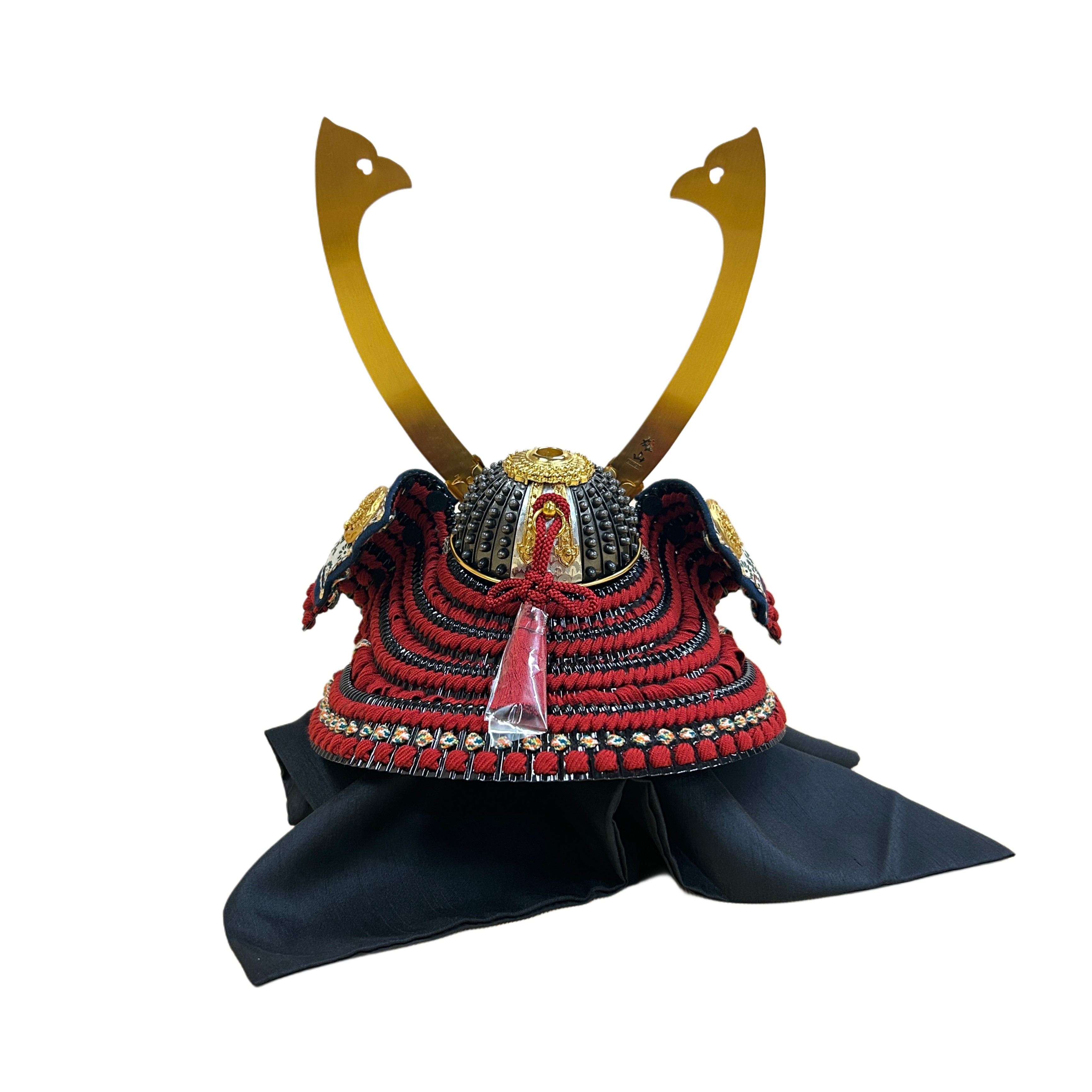 伝統的な黒小札茜糸威の美しさと、職人技が息づく合わせ鉢兜は、お子様の健やかな成長とたくましい未来を願う五月飾りにふさわしい兜です。