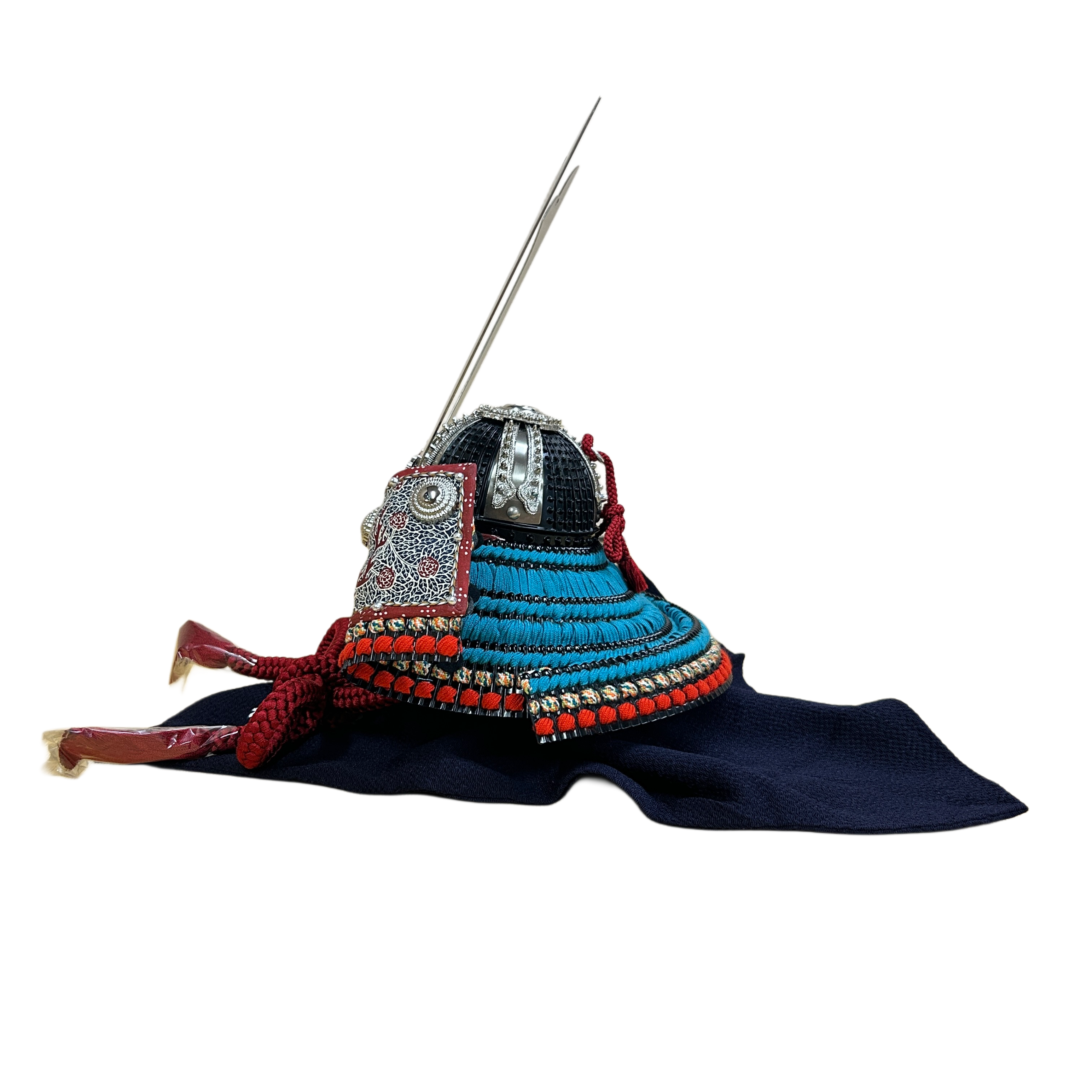 浅葱威の爽やかな色合いと落ち着いた飾りの調和が、お子様の健やかな成長を長う節句のお祝いにふさわしい五月人形です。