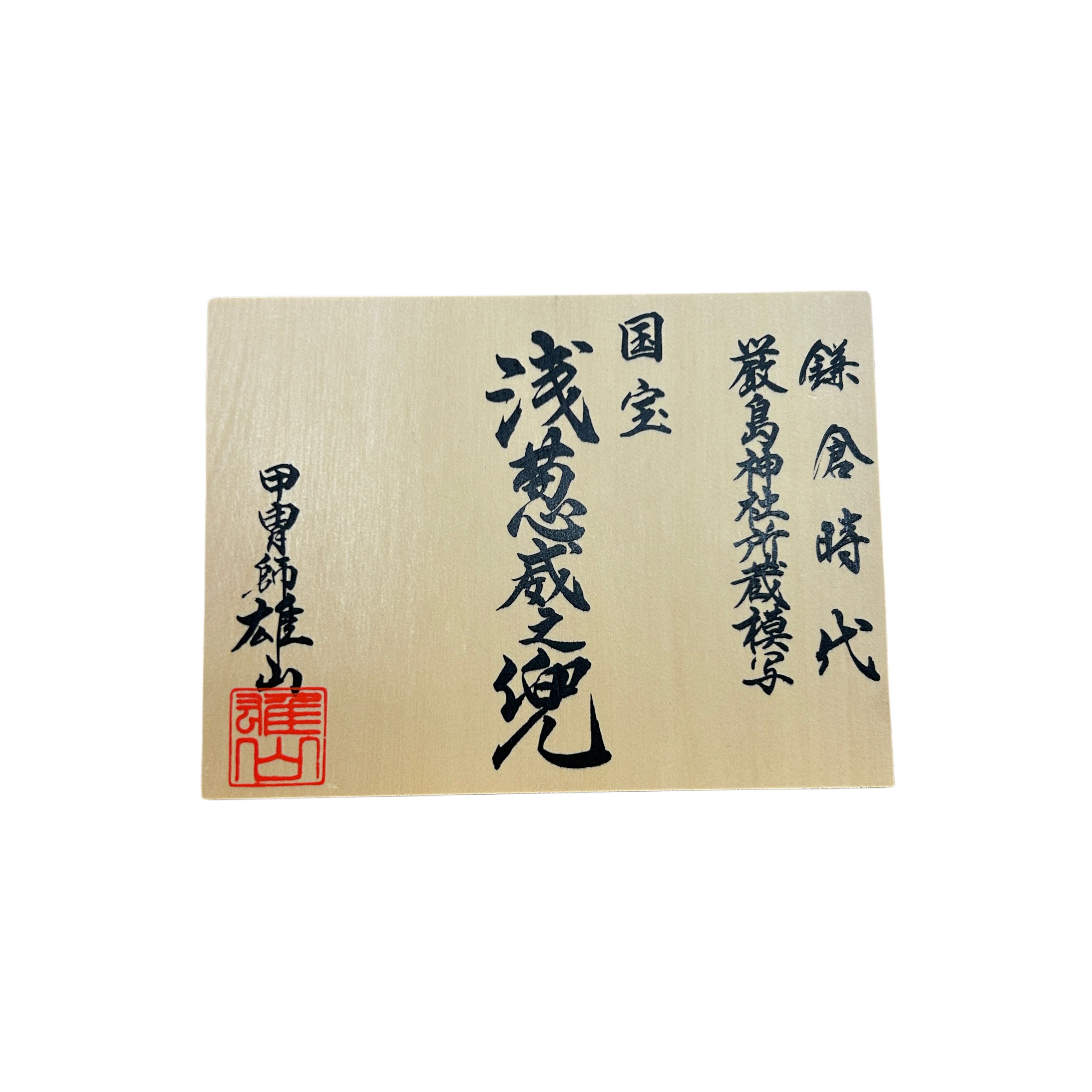 やわらかな青みを帯びた色合いが銀色の金具や小札と美しく調和し、気品ある佇まいを生み出しています。